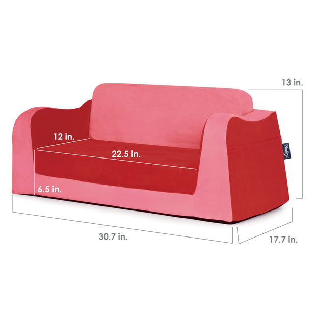 Comfy foam, supple fabric, arm rests and book pockets plus a wide sofa seat and ergonomic arms for maximum comfort! Since 2006, P'kolino has made playfully stylish children's chairs and sofas that are sturdy, durable and built to withstand the daily uses of childhood. With a stain resistant fabric cover that is oh so cozy, you and your child will fall in love with this comfortable seat! Our sofas are safe and smartly designed to be engaging, fun and require no assembly. These lovable sofas are made with 100% high density foam (like a premium mattress) and engineered to ship efficiently in one box to reduce packaging materials and the environmental carbon impact.
