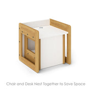 Paying homage to one of our most cherished yet retired children's products, the P'kolino Klick Desk, we proudly introduce our new Klick Duo Kids Desk! Drawing inspiration from its renowned predecessor, our Klick Duo Kids Desk is expertly crafted from premium solid wood and finished in a classic natural hue. Rooted in the Montessori philosophy, this desk aims to nurture creativity, independence, and a passion for learning in young minds. Offering adjustable seat and table heights by simply flipping the product over, our Kids Desk combines thoughtful design with ergonomic proportions, providing a functional space for young learners to thrive. Whether it's drawing, crafting, reading, or writing, this desk accommodates various activities effortlessly. Built to withstand the test of time, our Solid Wood Kids Desk ensures a robust workspace where children can pursue their interests and tackle homework with ease. The natural finish adds a touch of refinement to any playroom or study area, while the solid wood construction guarantees years of dependable use. Transform your child's learning environment with our Montessori-inspired Kids Desk. Embrace quality craftsmanship and ignite a lifelong journey of curiosity and creativity with this remarkable furniture piece.