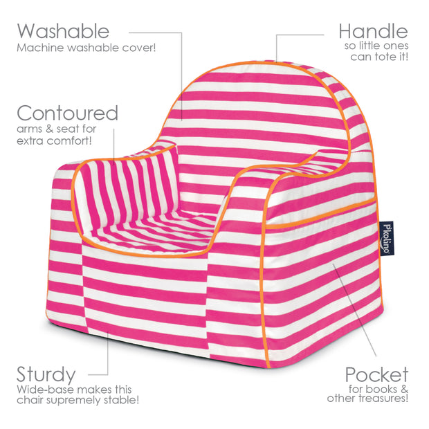 It is feathery light and has a handle so your little one can tote this chair to their favorite spot. Quiet time, to story time, to movie time and back again!