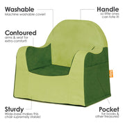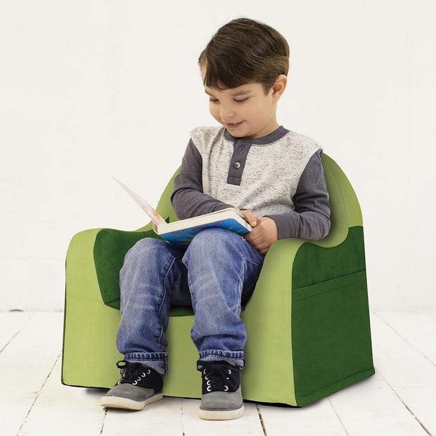 P'kolino Little Reader Toddler Chairs - Comfy foam, supple fabric, arm rests and book pockets plus a wide contoured seat and ergonomic arms for maximum comfort.