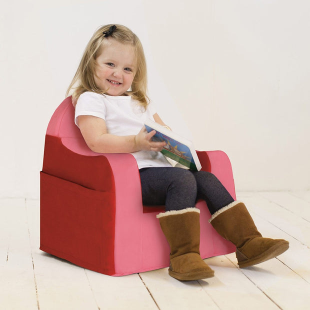 P'kolino Little Reader Toddler Chairs - Comfy foam, supple fabric, arm rests and book pockets plus a wide contoured seat and ergonomic arms for maximum comfort.